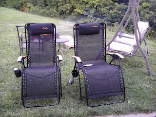 We got back to Whitetail about 4:30 and set up our new chairs for the race and the Bears game. We can bring our TV from the camper outside and mount it on the camper. It's super cool and unfortunately I didn't get a picture of the TV but I got a picture of the chairs.